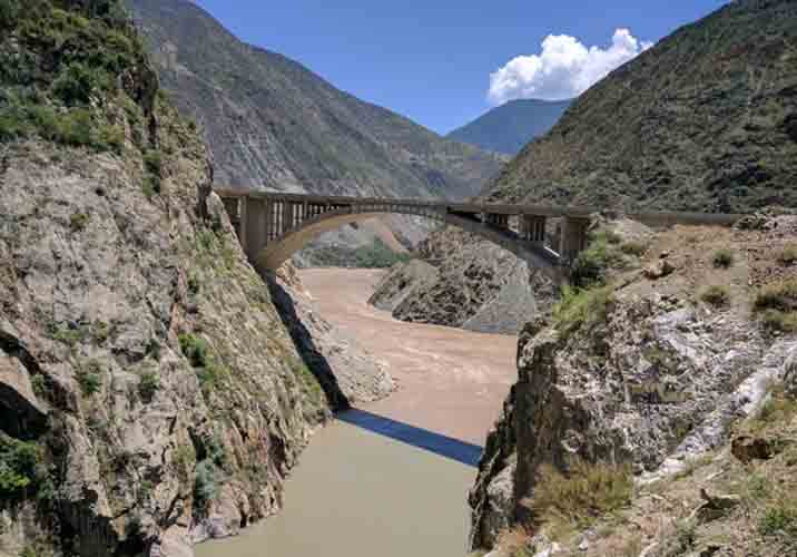 下山后就到了怒江边上,再沿江骑行约5KM到怒江桥。过桥后继续沿江骑行,湍急的怒江两边,是奇形怪状的悬崖,为了避免落石伤人,尽快通过这段路比较稳妥。