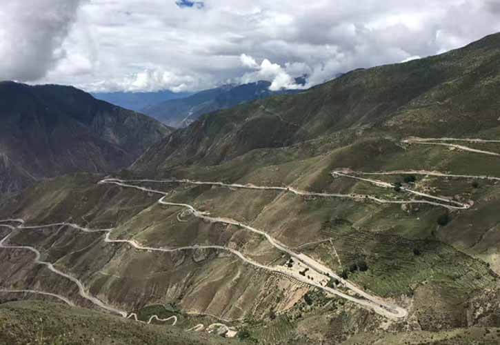 途中多次下雨后又是烈日暴晒,身上干了又湿。虽然爬业拉山比较轻松,但是下山的难度和危险性反而更大。过了垭口,就是著名的天路72拐,一共30公里的下坡,路险坑多,急弯之间的距离非常短,路边警示牌上写了发生过多次死亡事故。
