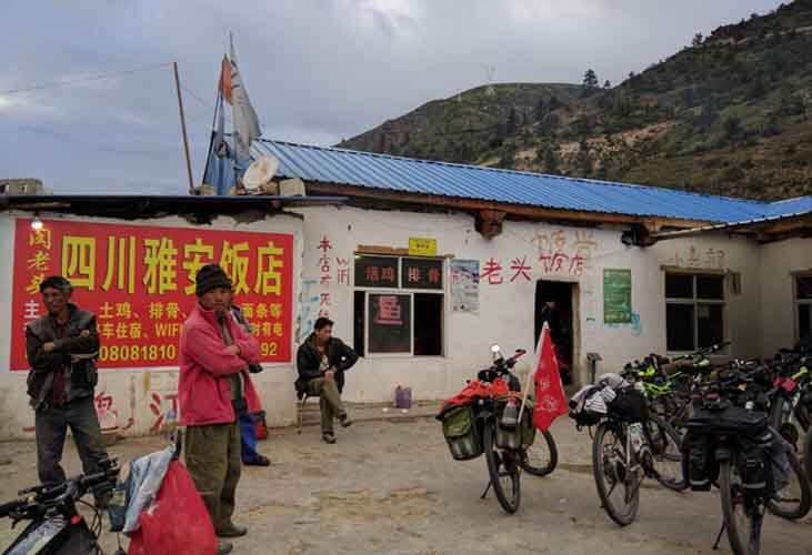 拉月沿马路一排有十几栋一层的房子,都是工地上那种工棚分割而成,老板主要是外地人。入住了豫香饭店,价格20元一个床位,满满的全部都是骑友。就在这个店吃了个回锅肉盖饭,价格35元。拉月四面环山,附近也有温泉,风景比排龙要稍微好一点。