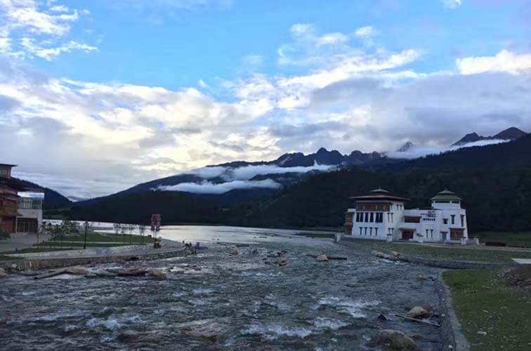 在县城中心,有一个小广场,晚上很多人跳藏舞,而且以年轻人居多,与内地大妈们的广场舞感觉完全不同。虽然是雨季,帕隆藏布河还是很清澈,湍急的河水轰隆着奔腾而去。晚上一个人在河边坐了很久,在水流奏鸣曲的陪伴下,看着对岸灯火辉煌新建不久的酒店,还有远处模模糊糊的雪山,感觉真是浮生若梦啊……